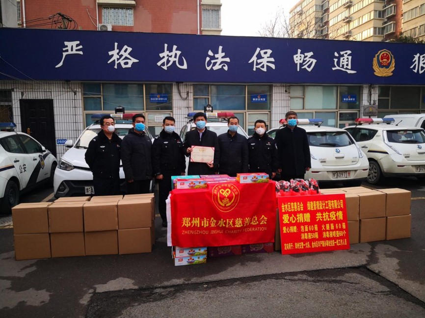 為全力支援新型冠狀病毒疫情防控工作,在疫情防控緊要關頭, 2020年2月8日下午,正值中國傳統的元宵佳節,鄭州市政協委員、綠建景觀設計工程有限公司董事長王建發帶領公司部分高管,分別慰問了抗擊在疫情戰場一線的鄭州市公安局交通警察支隊一大隊、鄭州市金水區豐產路街道辦事處、姚砦社區等同志們,為他們帶去了價值15130元的消毒液、消毒液噴壺等防疫急需物資及方便面、火腿腸等日用生活保障物資,積極履行企業社會責任,助力于打贏疫情防控阻擊戰。