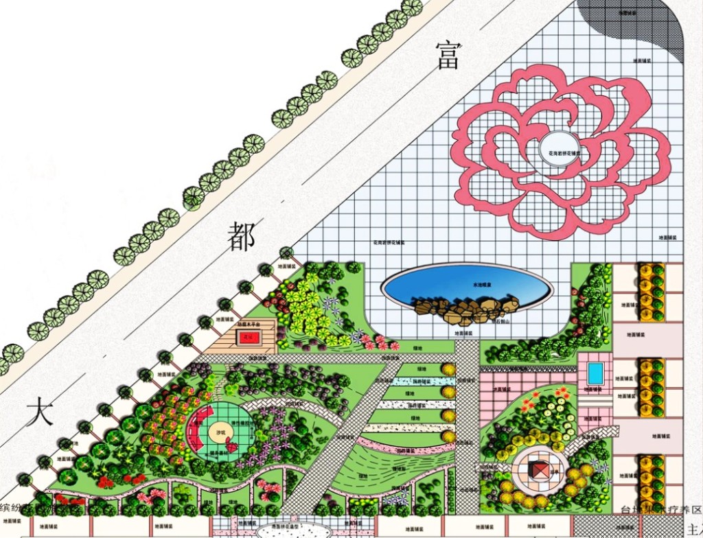 本案景觀設計從就醫候診、看護健康、科教研發等方面考慮滿足醫院的綜合性功能,在景觀設計中以東方的古典園林為底蘊依托,采用現代的營造方式,以精、氣、神的聚合與四季、五行的契合為理念載體,借助于假山、跌水、景墻等豐富的景觀構筑,營造出一個明晰、通達、自然的生態園林式醫院環境。